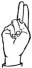 На ћирилици написано БОГОСЛАВА ЈАЊИЋ састоји се из 14 слова [?]. Исписано ћириличном једноручном азбуком за глувонеме: